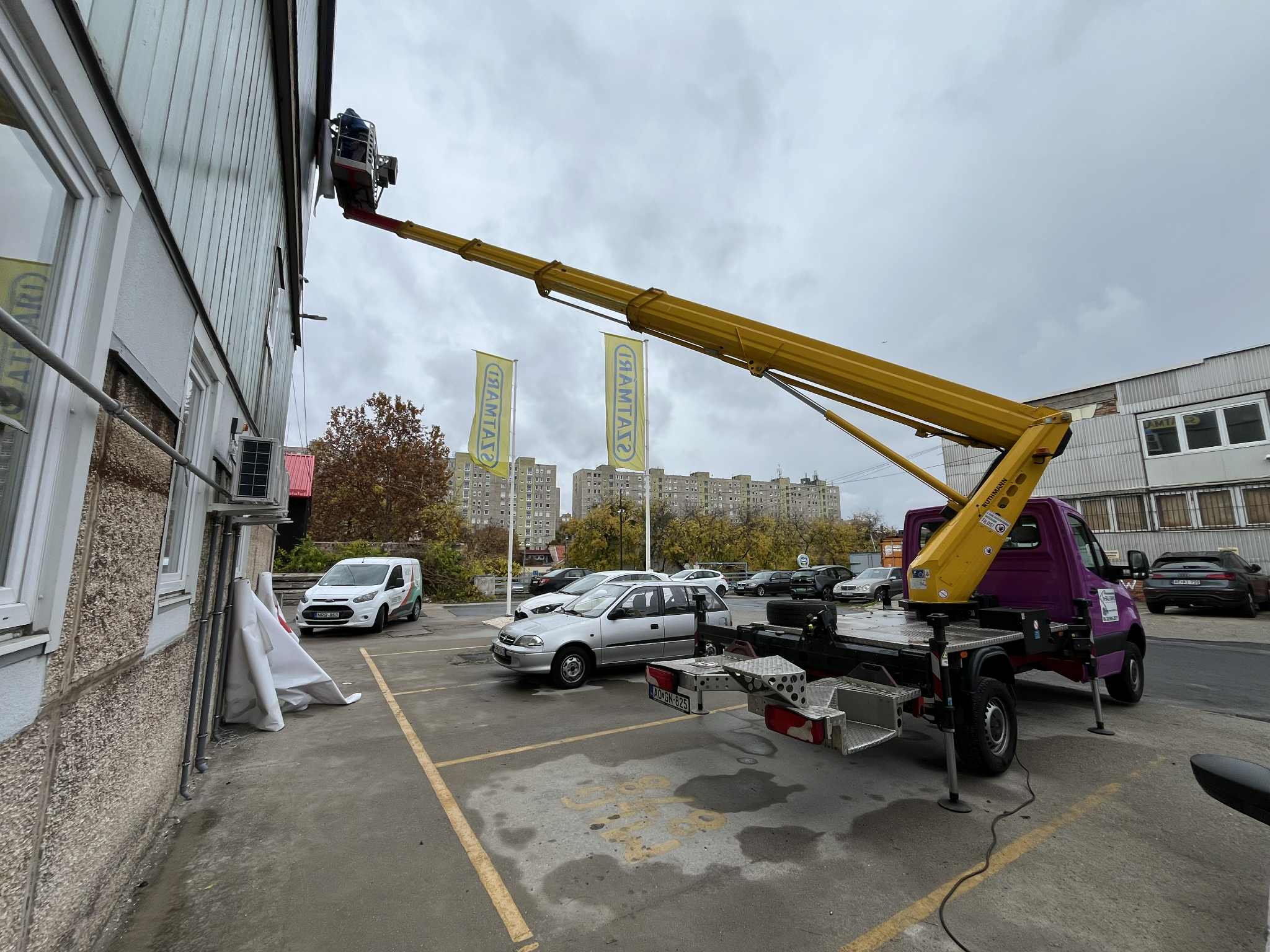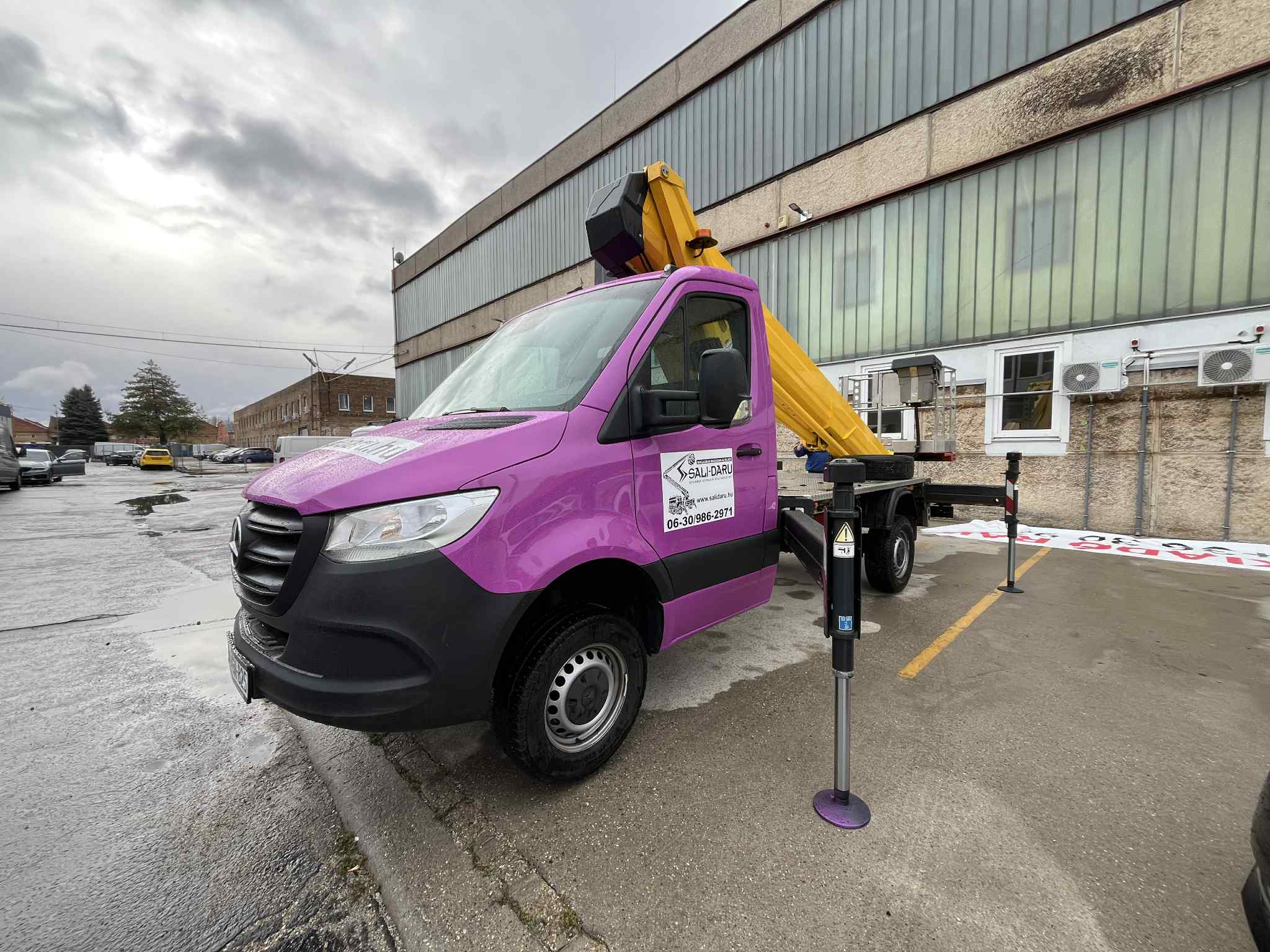 A legnagyobb munkamagasságú emelőkosaras autónk, 61 méteres emelőmagasságon, 600 kg teherbírással képes dolgozni.